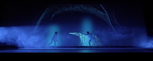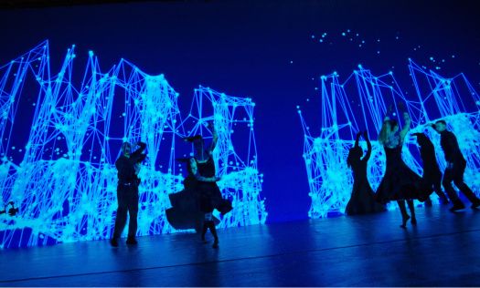 Le décor digital devient le prolongement du mouvement : il met en lumière les danseurs, sans jamais les effacer.